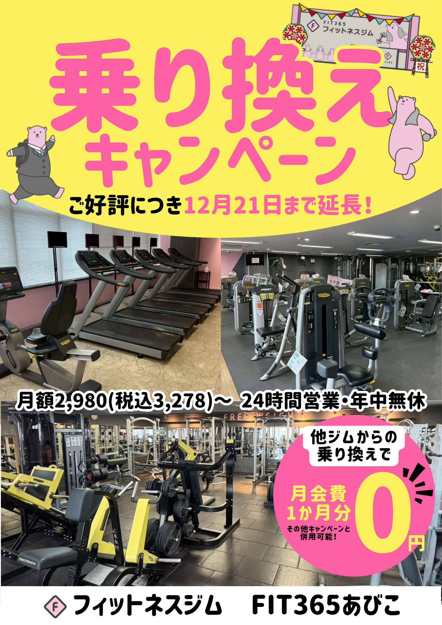 ※ジム移籍キャンペーン期間中に入会していただき、12月21日までに以前通っていたジムの証明書をスタッフに提出で適応