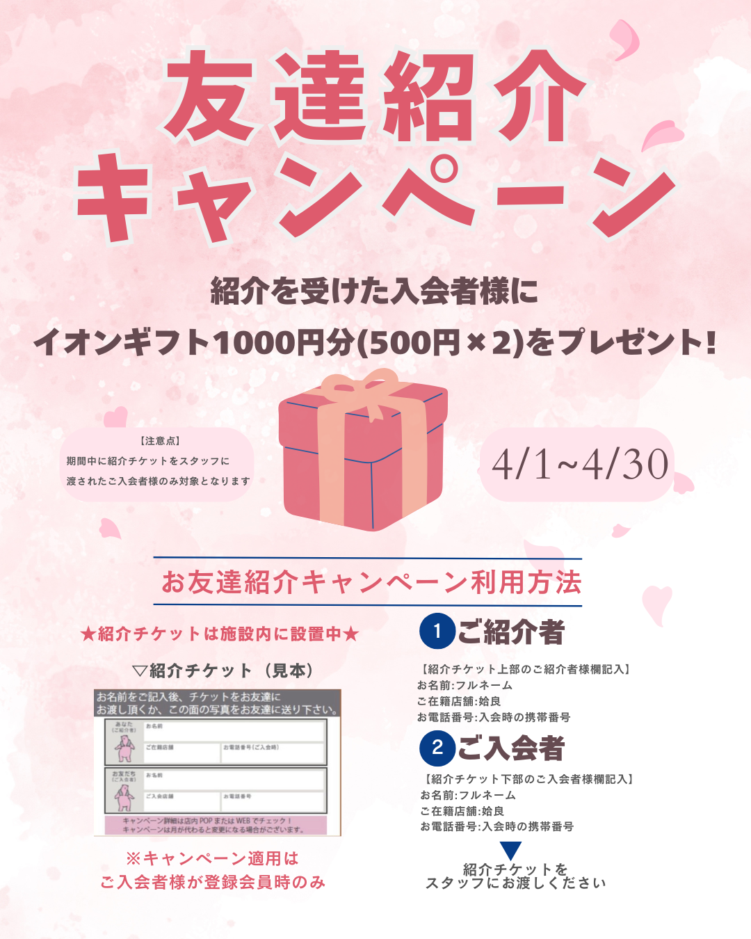 4/1~4/30「春の入会キャンペーン」を開催!!