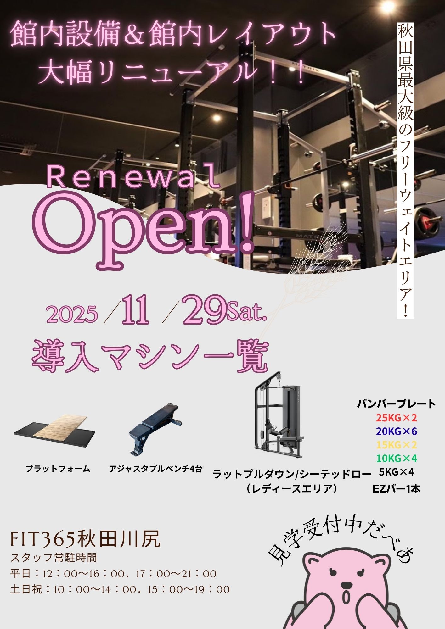 パワーアップしたFIT365秋田川尻をお楽しみに