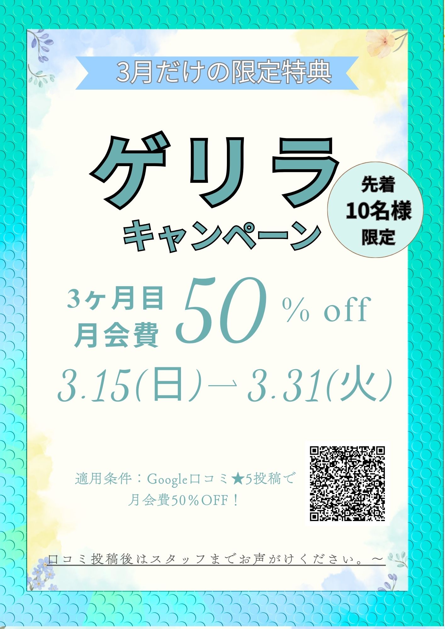 キャンペーンチラシはこちらから3月新規入会キャンペーン