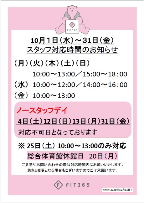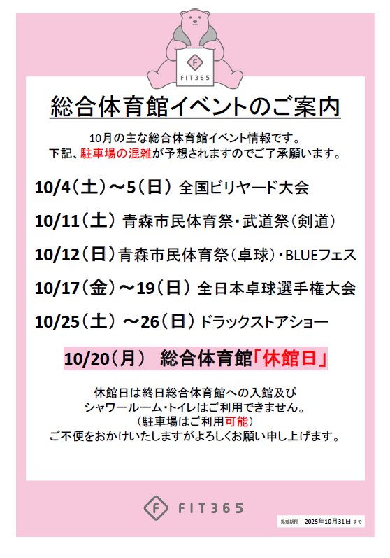 青森市総合体育館 10月教室&利用予定表のご案内です。