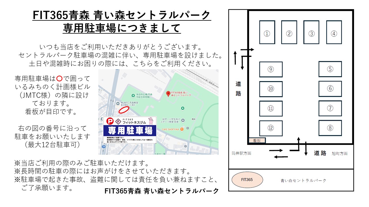 - 青い森セントラルパーク駐車場共用300台 料金:3時間無料