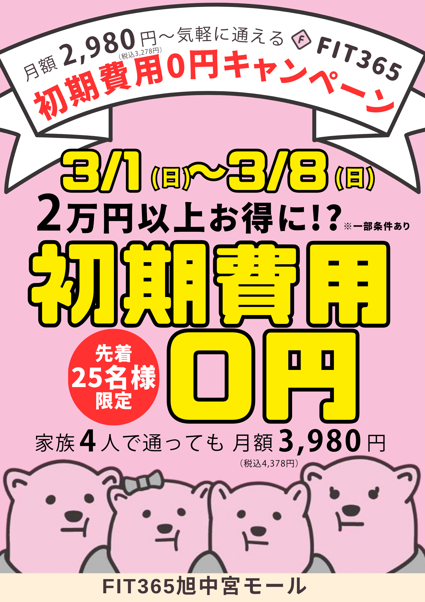 いつもFIT365旭中宮モールをご利用いただきありがとうございます。