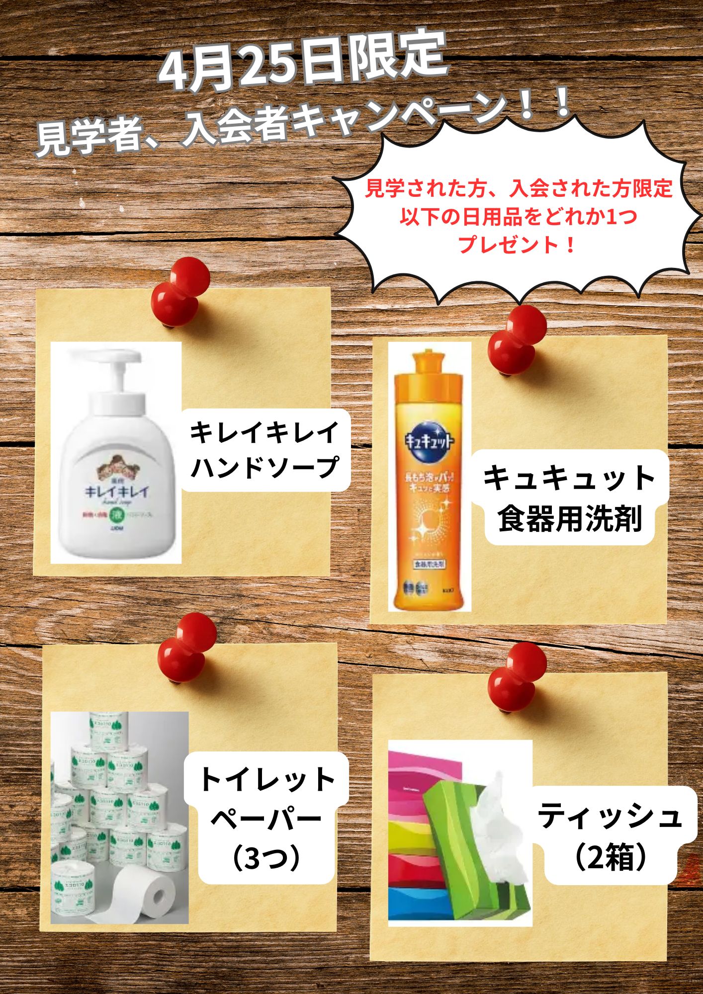 更にこの日に入会されると選べる日用品プレゼント!