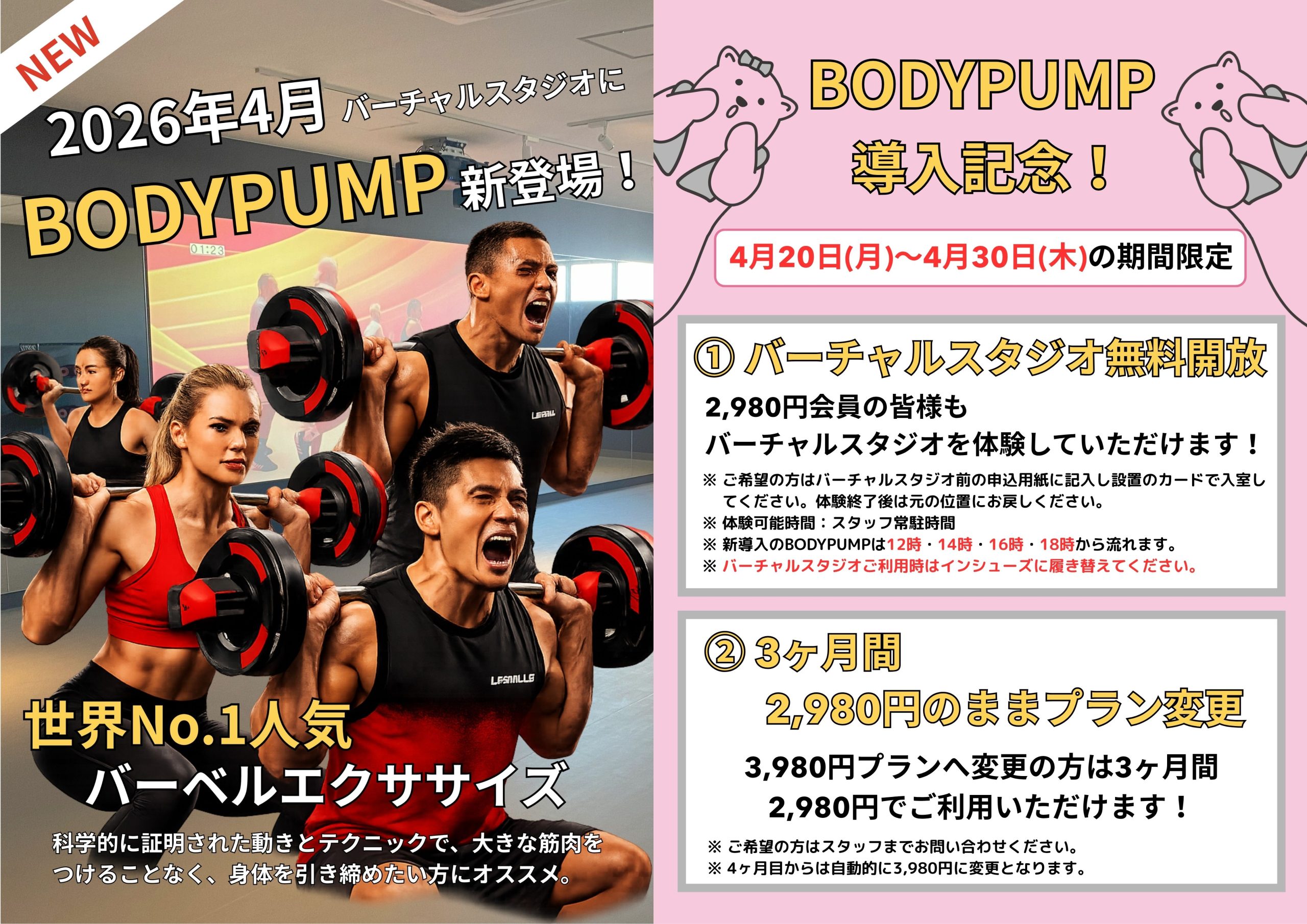 | お一人で通うプラン※1月額 2,980円(税込3,278円) |