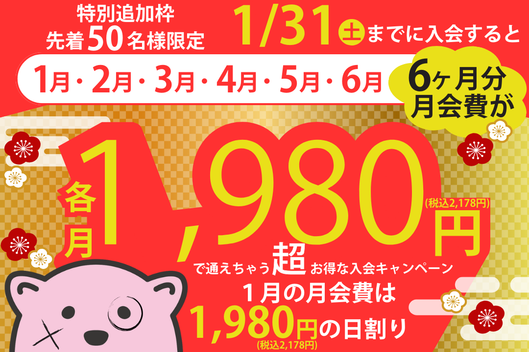 各月1,980円(税込2,178円)で通える破格のチャンス!!