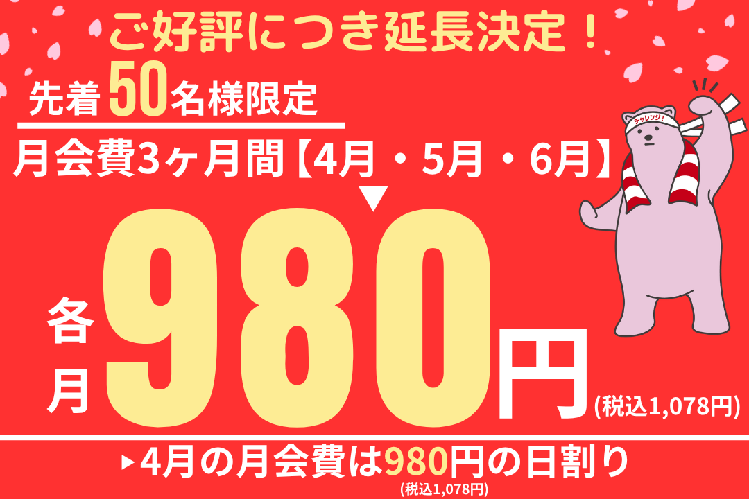 各月980円(税込1,078円)で通える破格のチャンス!!