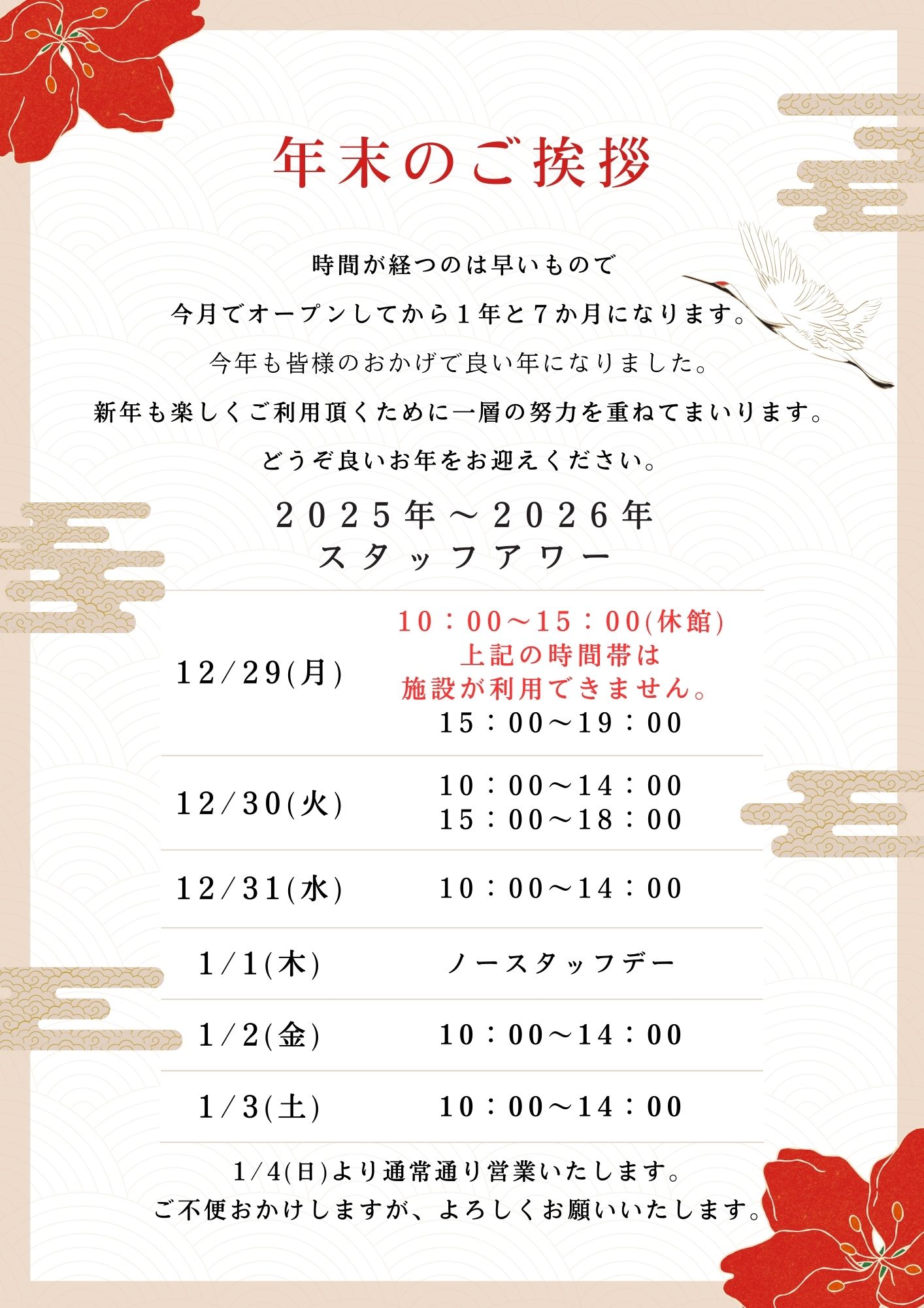 来年も皆様のトレーニングをサポートできることを楽しみにしております。