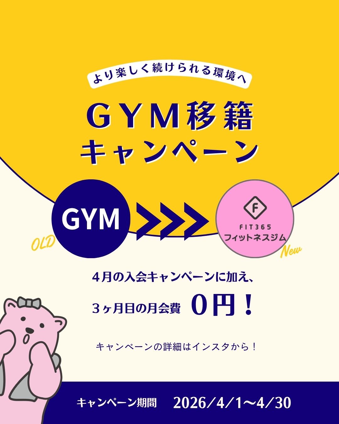 4/1(水)〜4/30(木)でGYM移籍キャンペーンを開催いたします