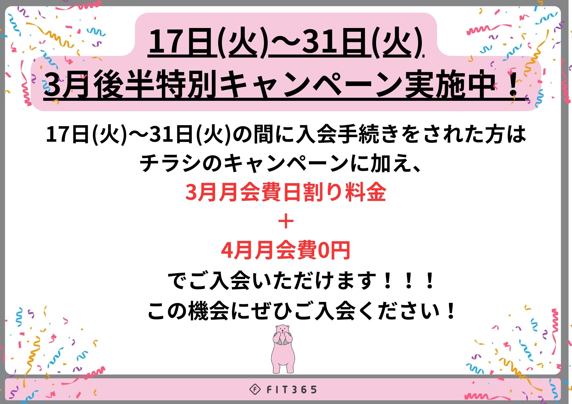 いつもFIT365をご利用頂き有難うございます。
