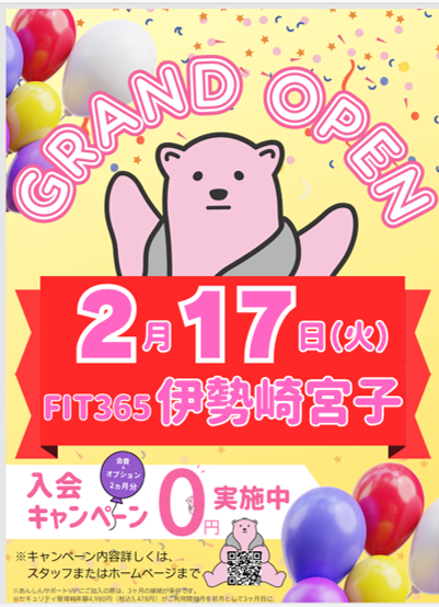 FIT365伊勢崎宮子!2月17日(火)グランドオープン!!