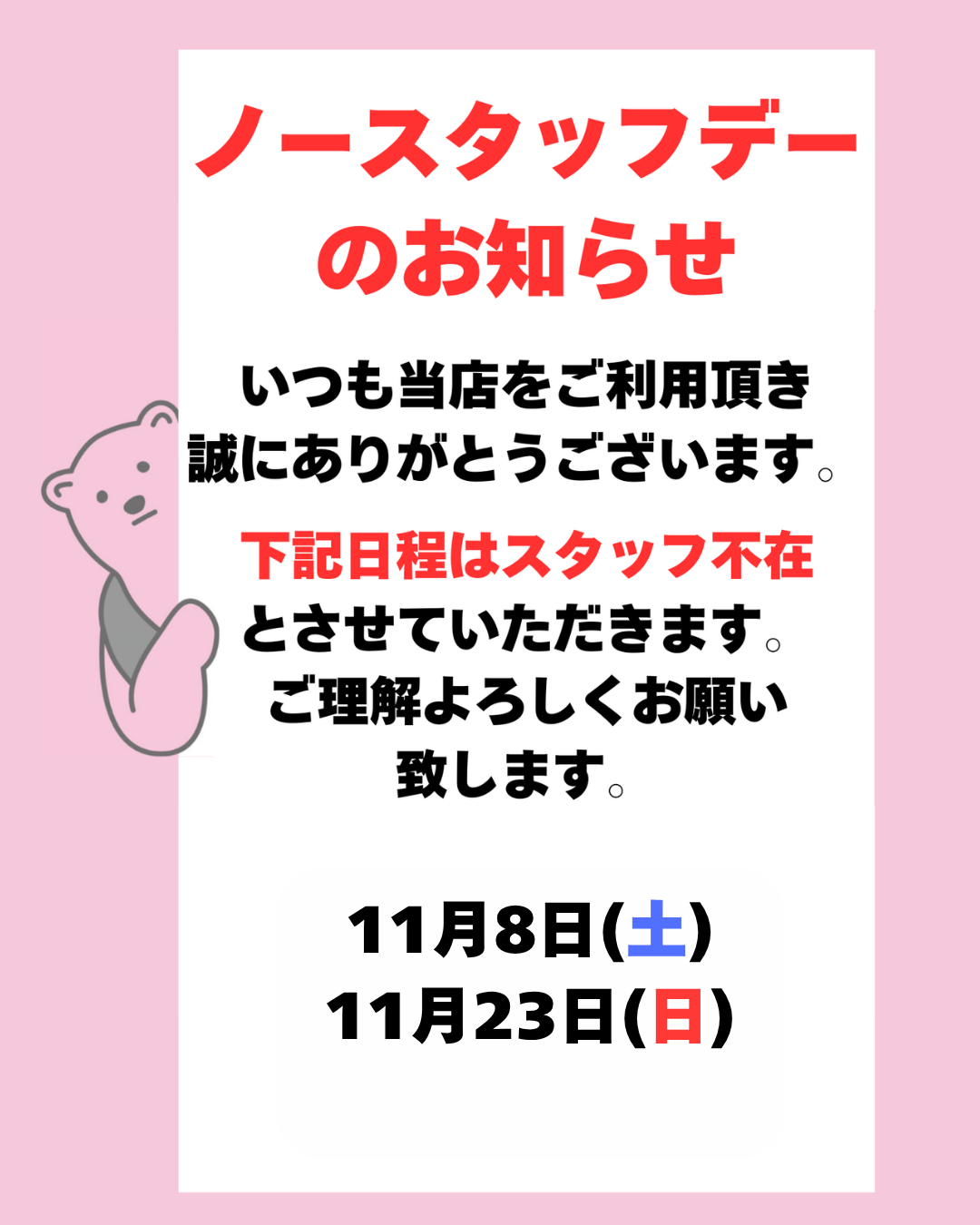 スタッフ常駐時間 11:00~15:00 16:00~20:00