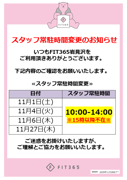 土曜日のスタッフ常駐時間は2025年9月1日より変更となっております。