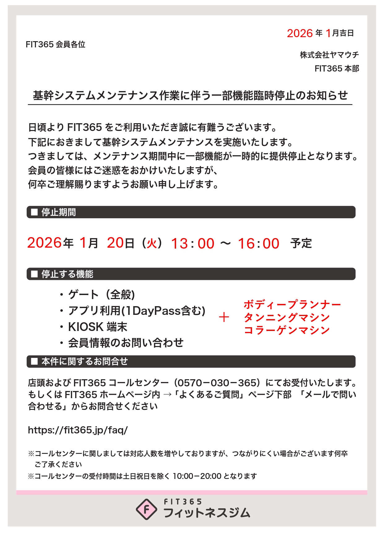 お電話の受付はコールセンターでのみ行っております。上記電話番号以外のお問い合わせは行っておりませんので予めご了承ください。