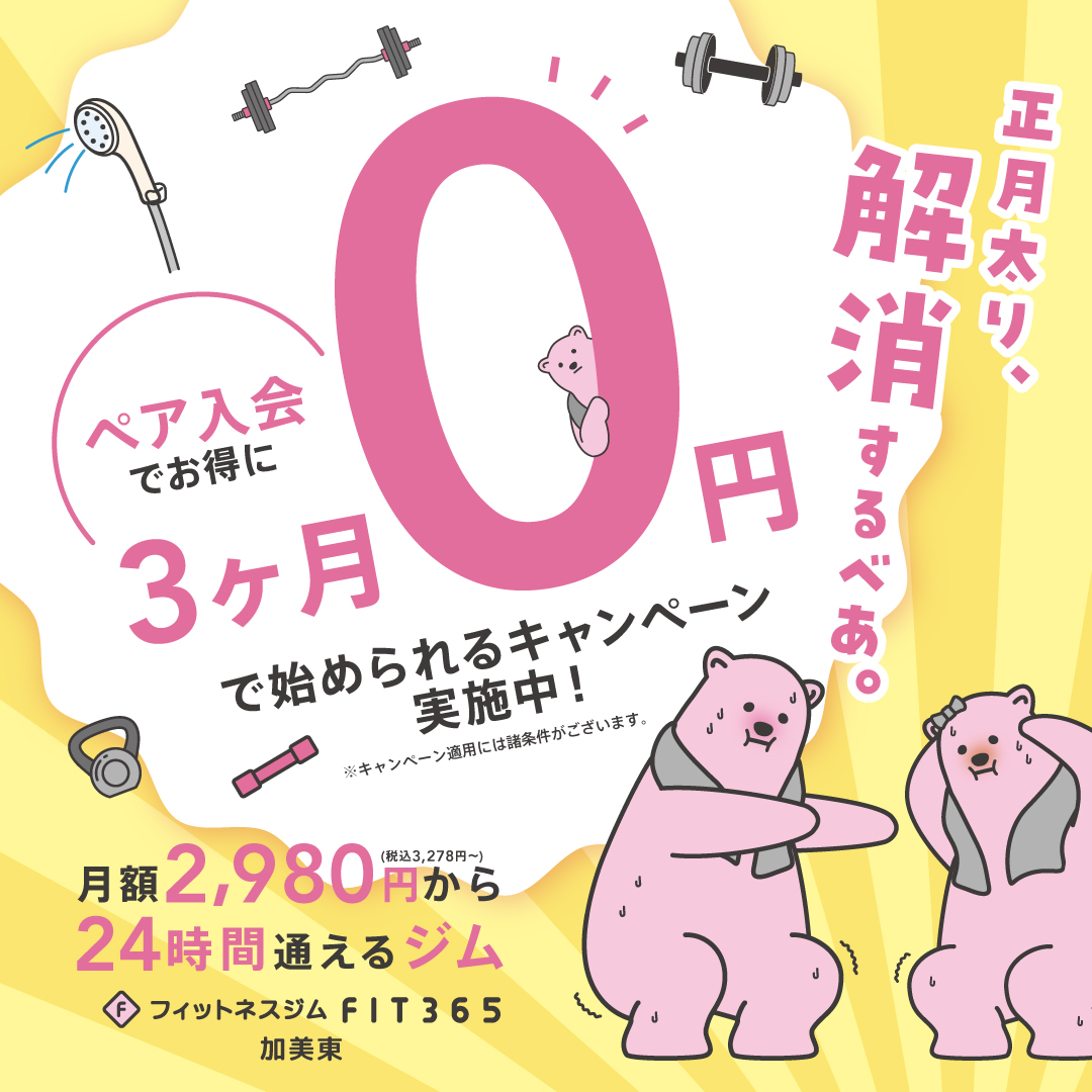 ペア入会でお2人分の3か月目の月会費が無料に!