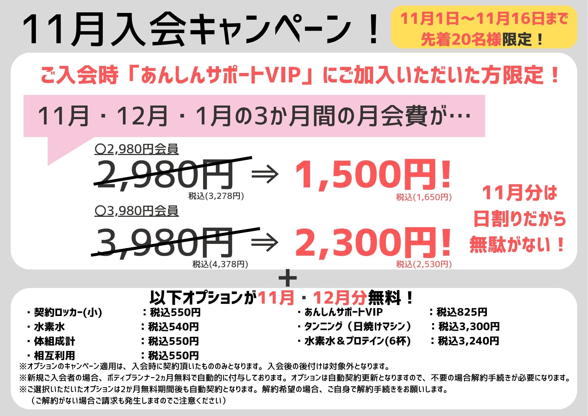 入会手続き時にご契約いただいた以下のオプション、11月・12月分の2か月無料!!