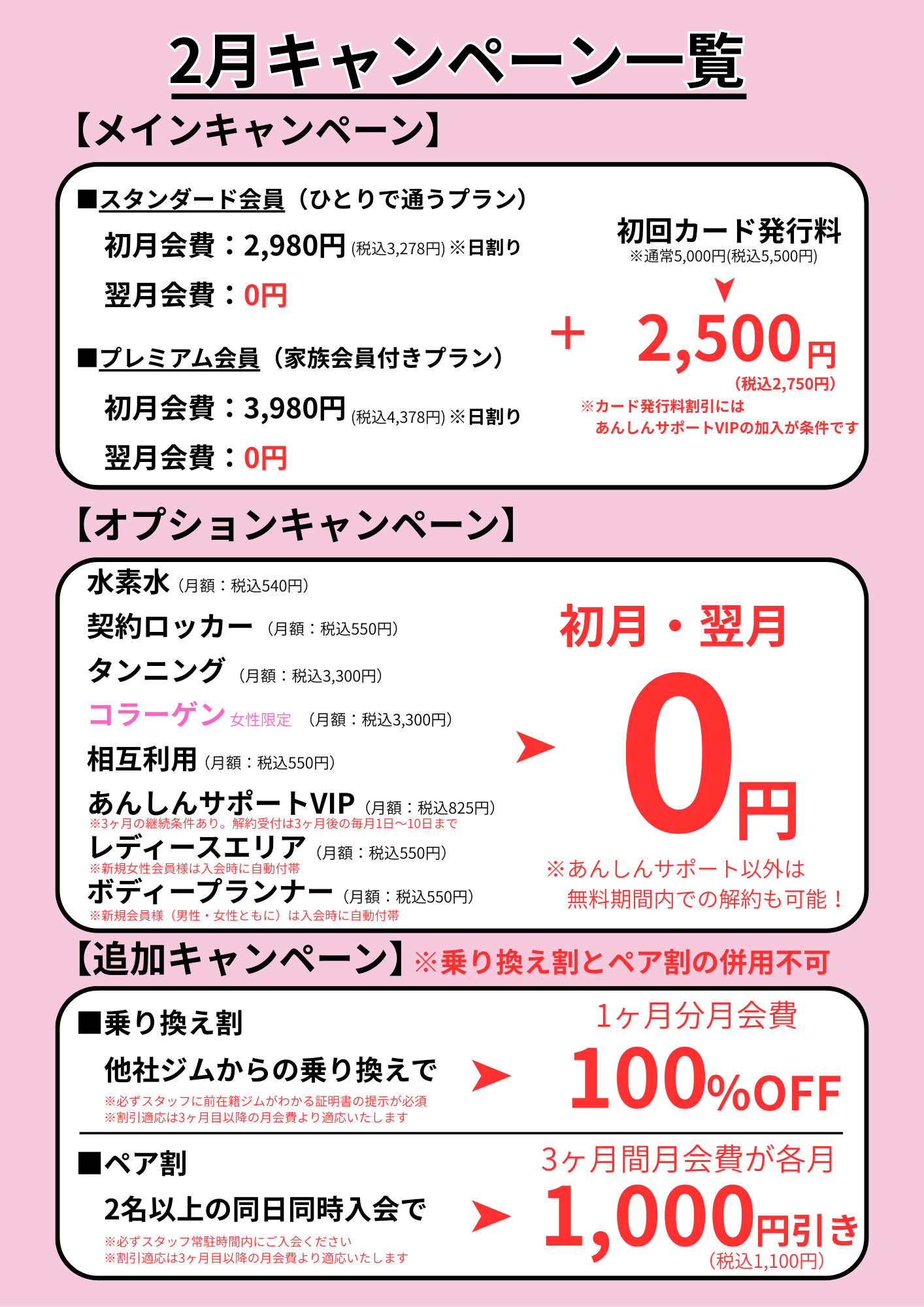 ※6:女性会員、初回入会時自動付帯(2ヶ月無料)