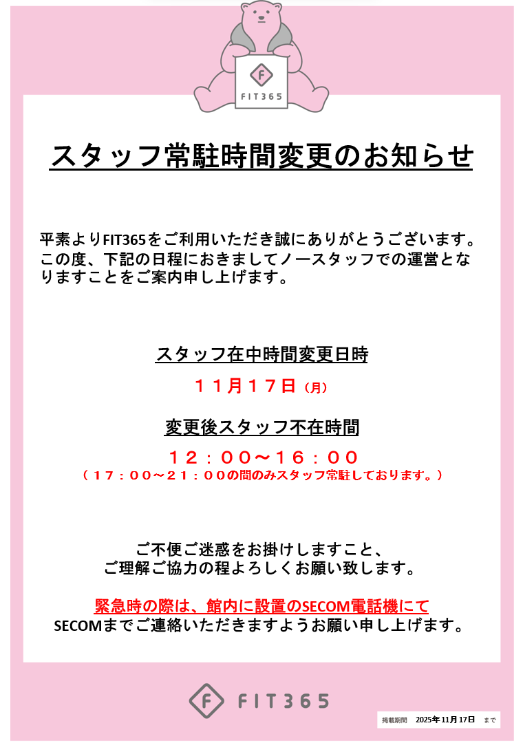 会員カードが発行されましたら、ご自由にFIT365をお楽しみください。