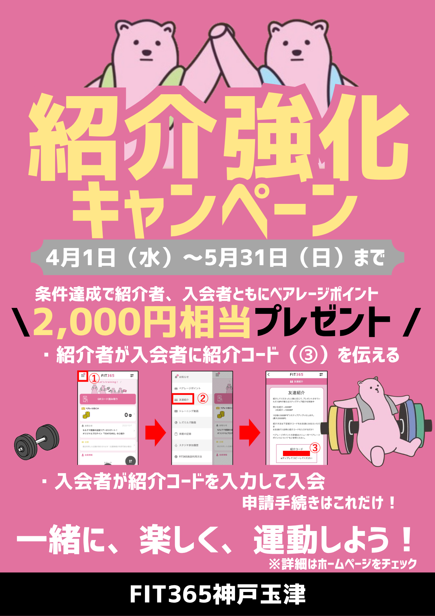※紹介者、入会者がFIT365神戸玉津会員のみ適応