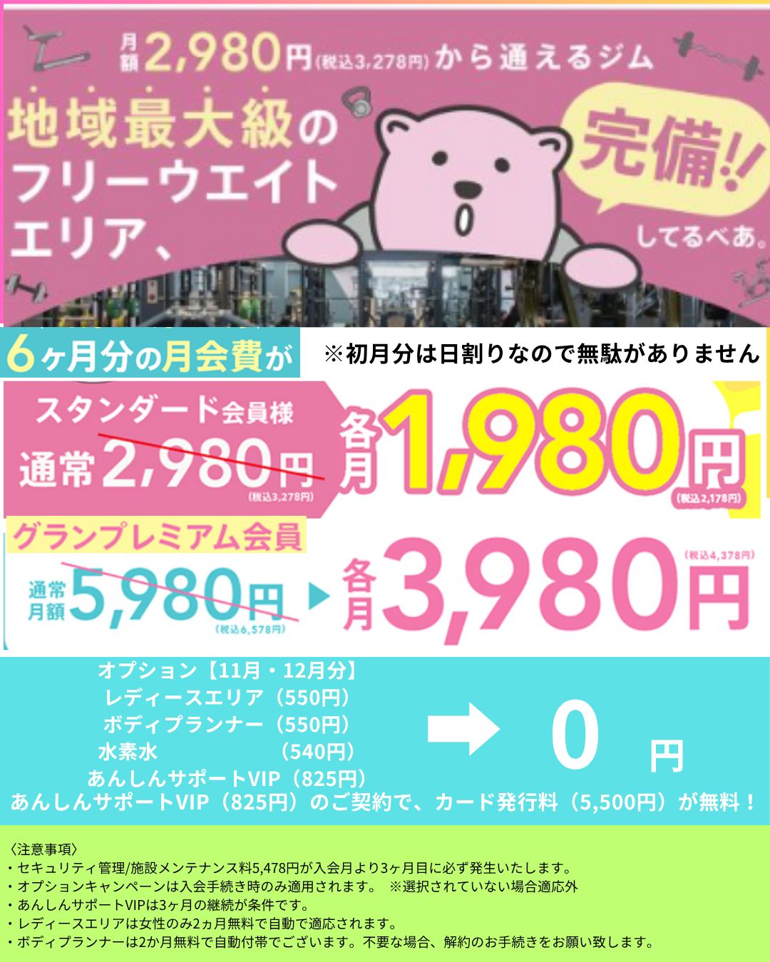 | FIT365あんしんサポート※12月額 500円(税込550円) |