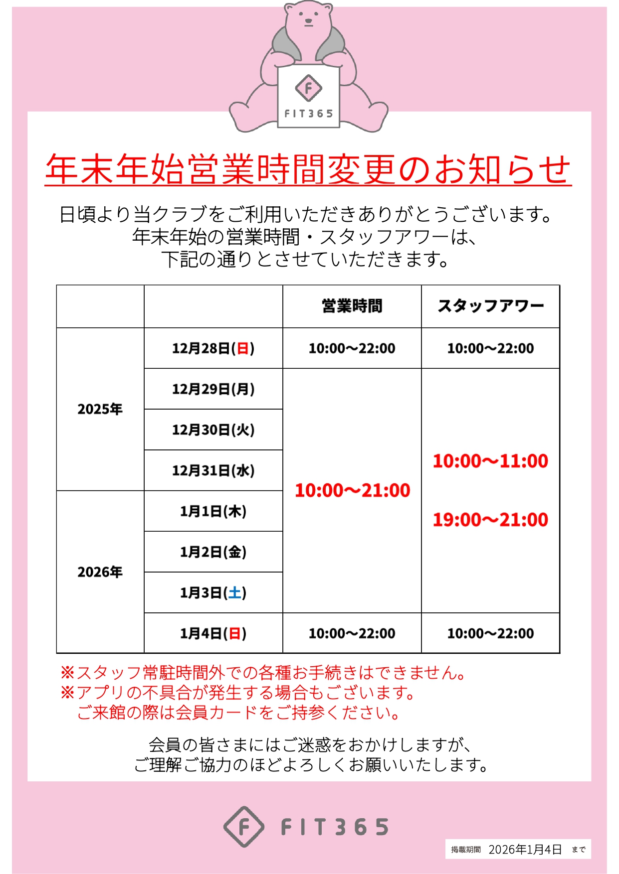 平素より FIT365イオン熊谷 をご利用いただき誠にありがとうございます。