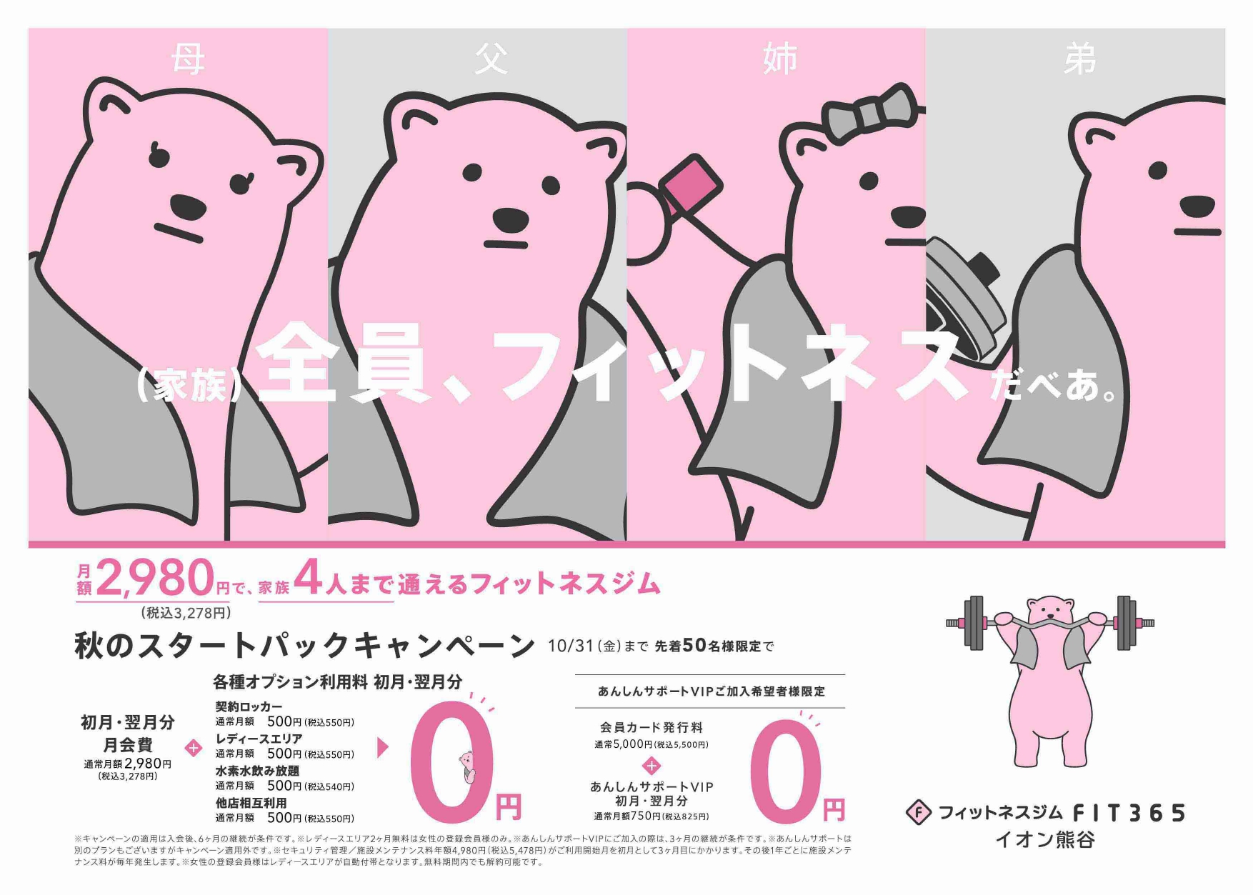 入会してない方でもFIT365イオン熊谷店が1日中ご利用できます。