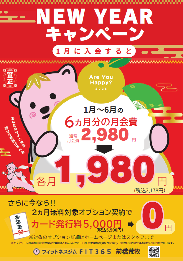 1月にご入会すると通常月会費3,278円→6カ月間2,178円に!!!