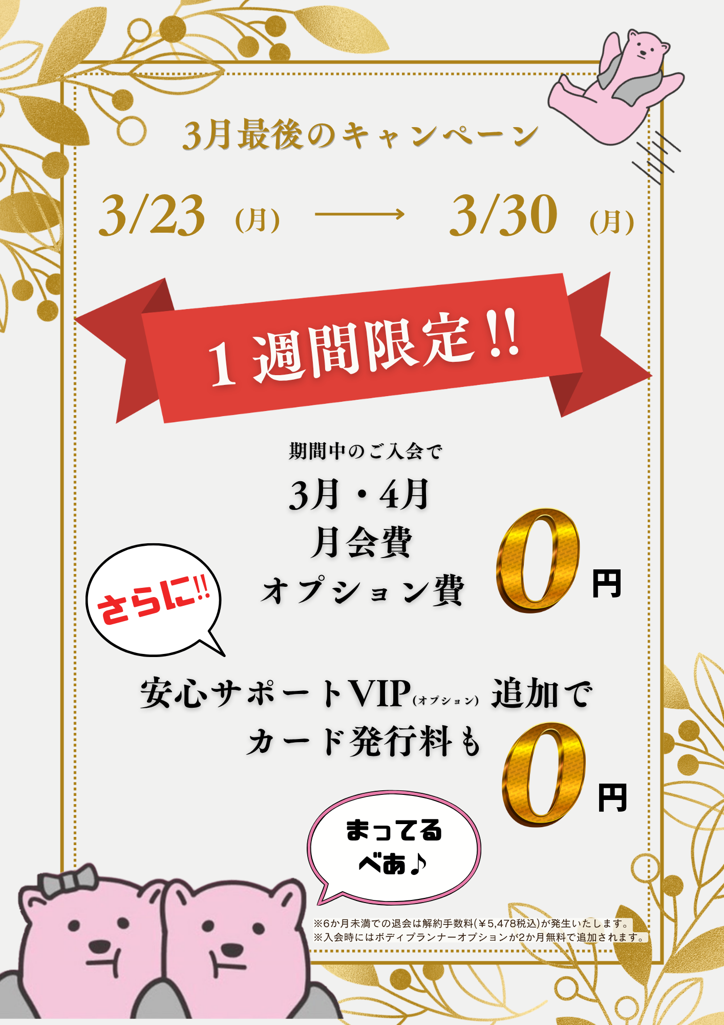 ※4:女性登録会員の方は入会時に自動付帯し、2ヶ月間無料でお使いいただけます。