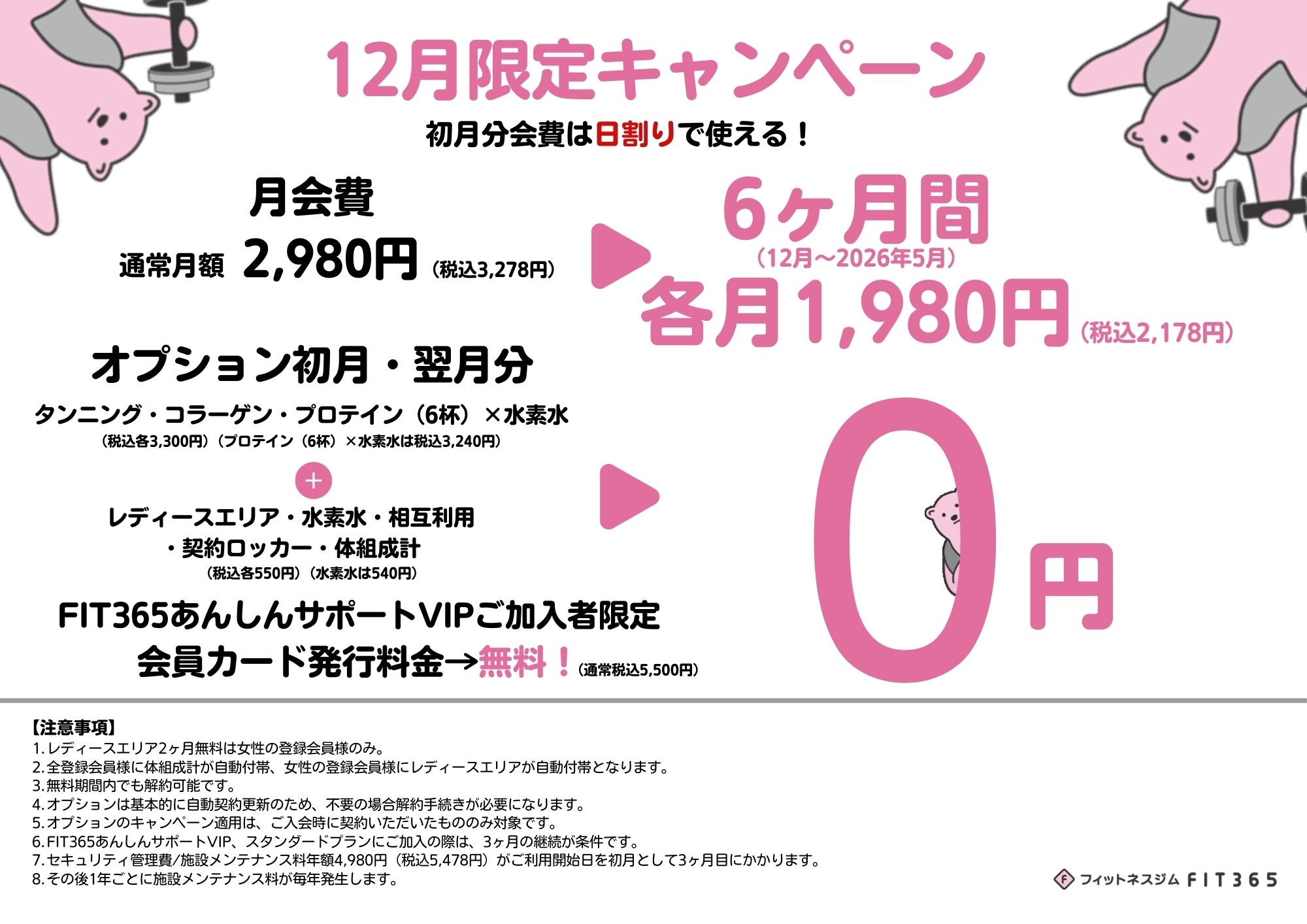 ※FIT365あんしんサポートVIP、スタンダードプランにご加入の際は、3ヶ月の継続が条件です。