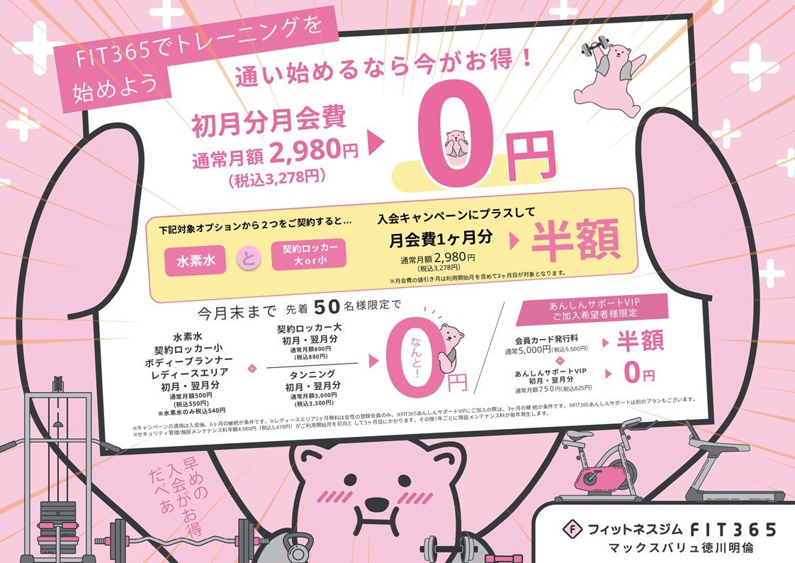 ★FIT365徳川明倫在籍の会員様からの紹介で入会の方が対象 ➡ 紹介者・ご入会者ともに月会費1ヶ月分半額