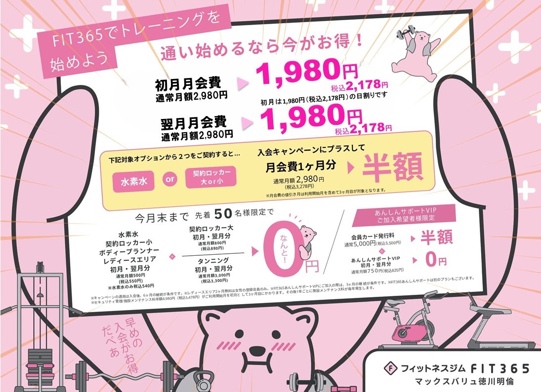★FIT365徳川明倫在籍の会員様からの紹介で入会の方が対象 ➡ 紹介者・ご入会者ともに月会費1ヶ月分半額