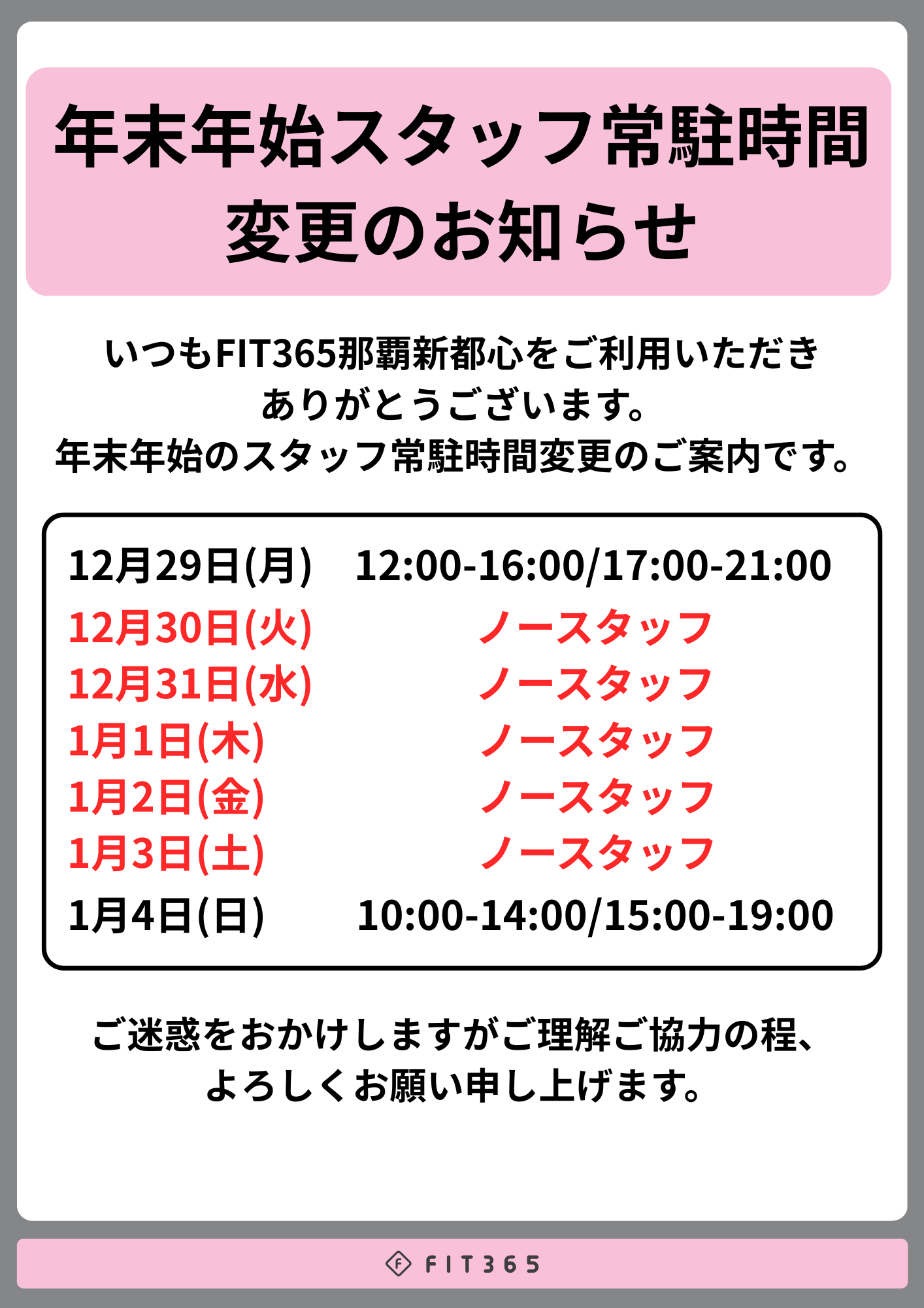 ※ノースタッフ:金曜日