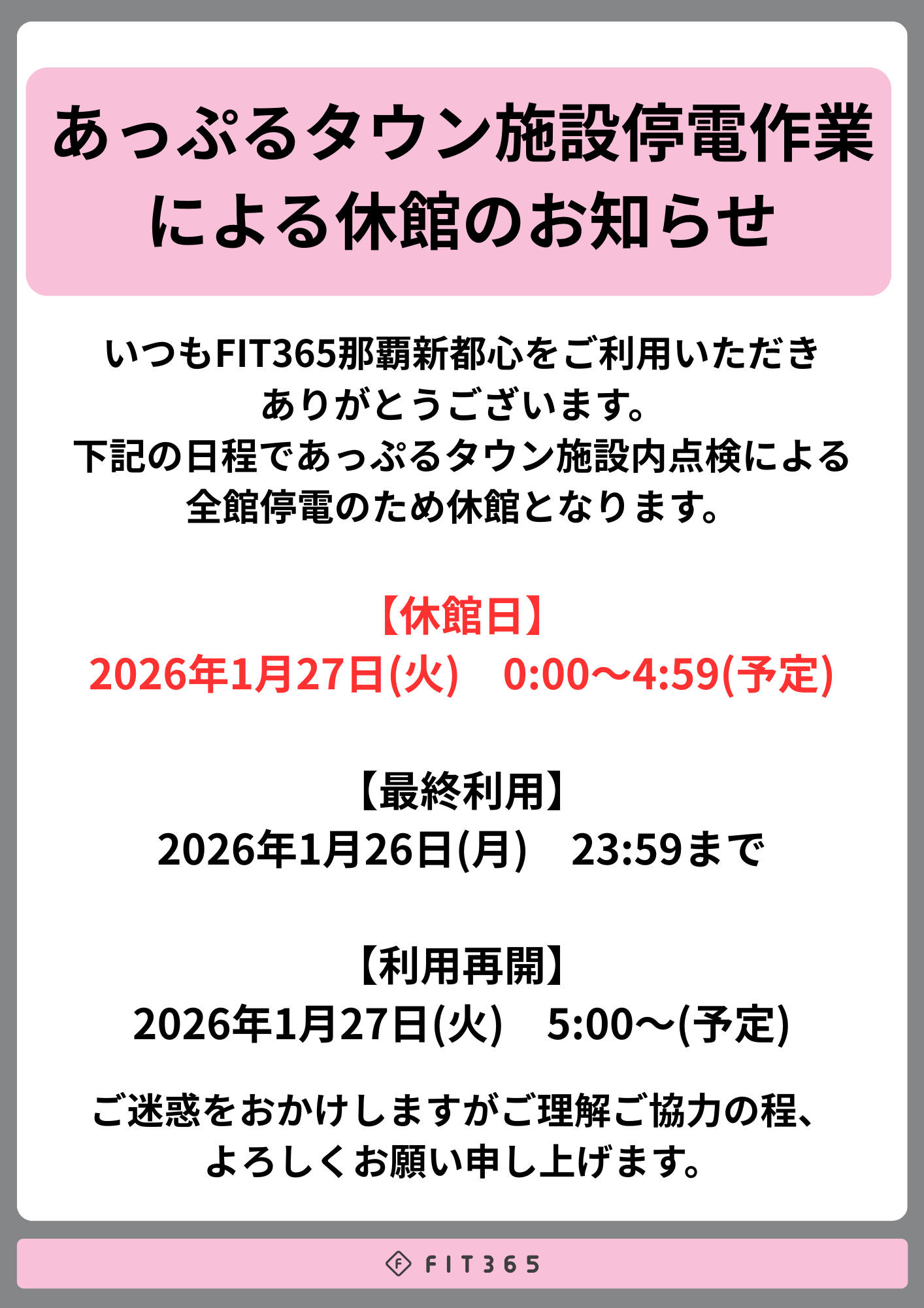 会員カードが発行されましたら、ご自由にFIT365をお楽しみください。