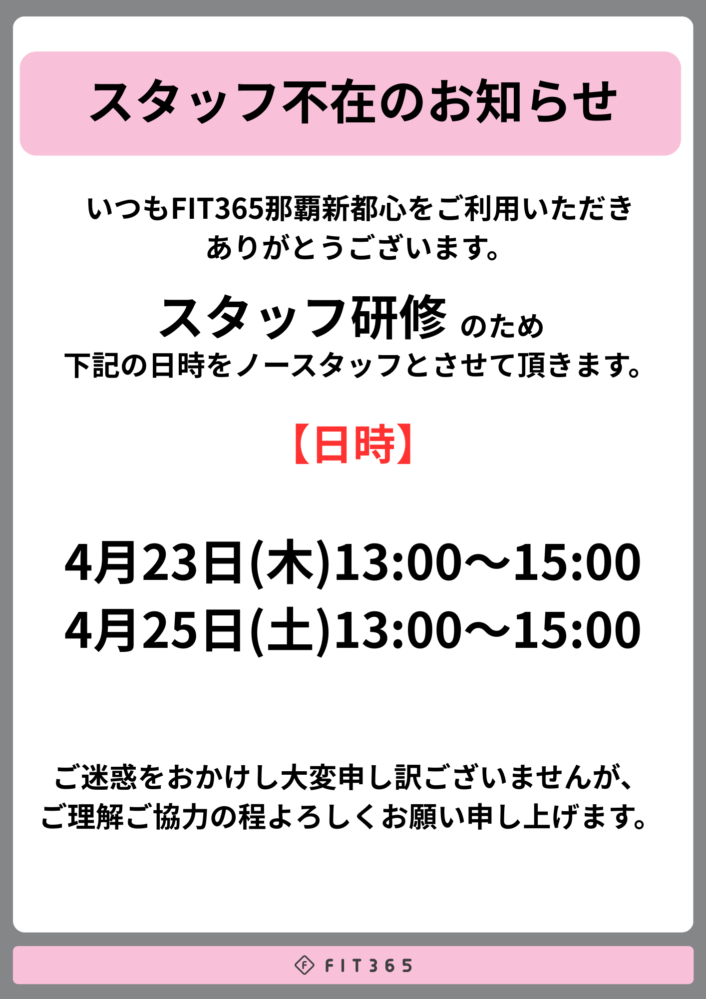 ※ノースタッフ:金曜日