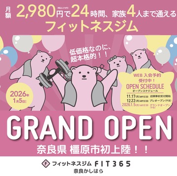 11月17日(月)10:00~ FIT365奈良かしはらにて会員登録が可能です!