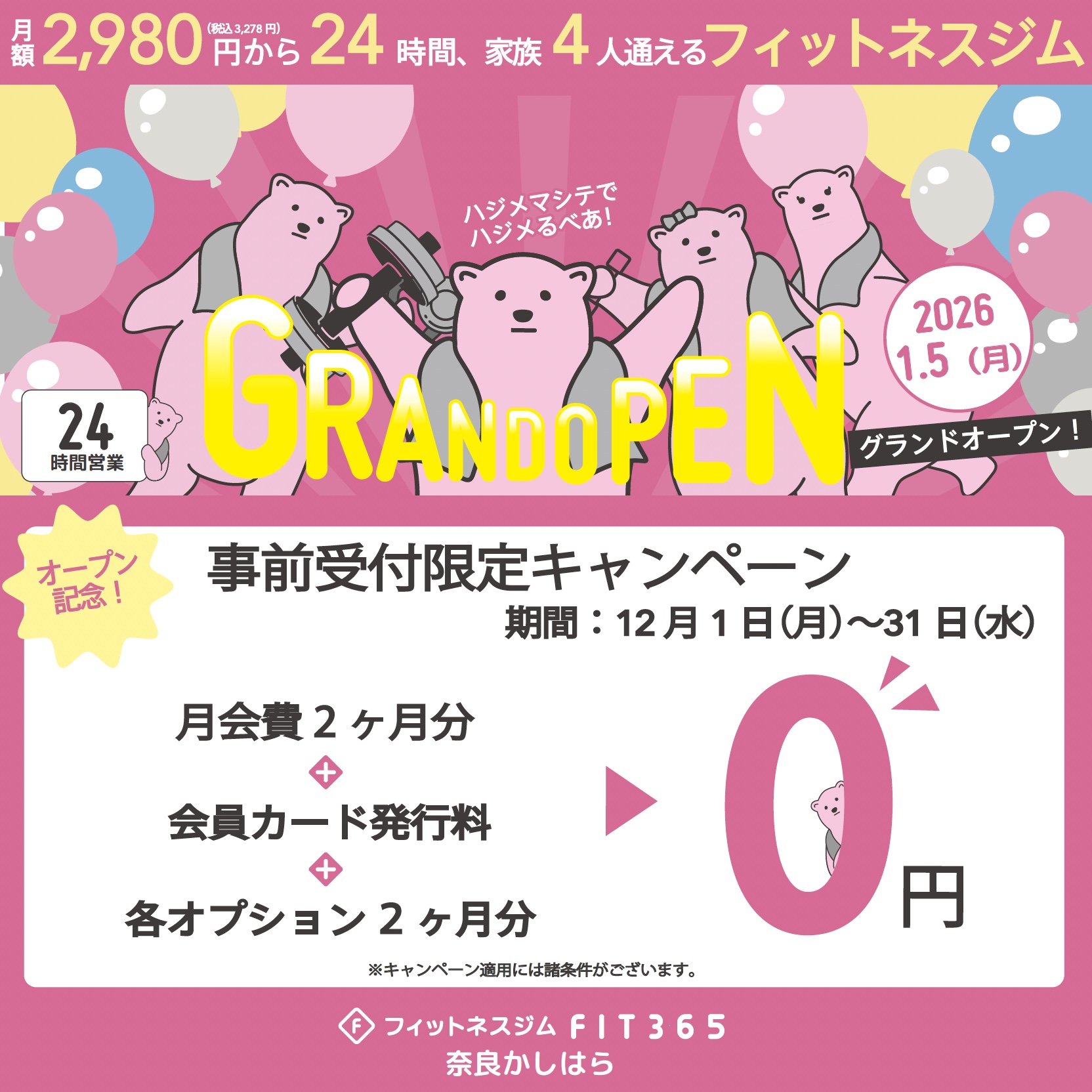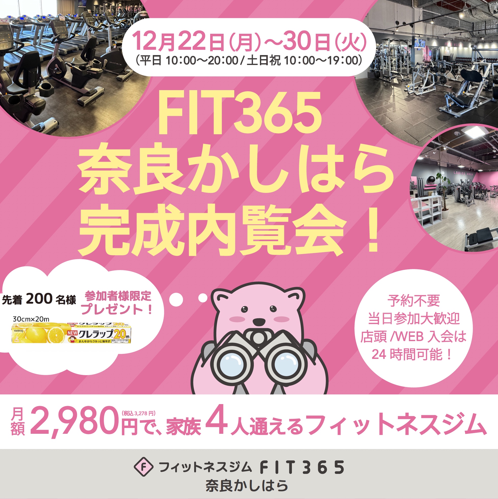 また、プレオープン期間中無料でFIT365奈良かしはらの施設をご利用いただけます!