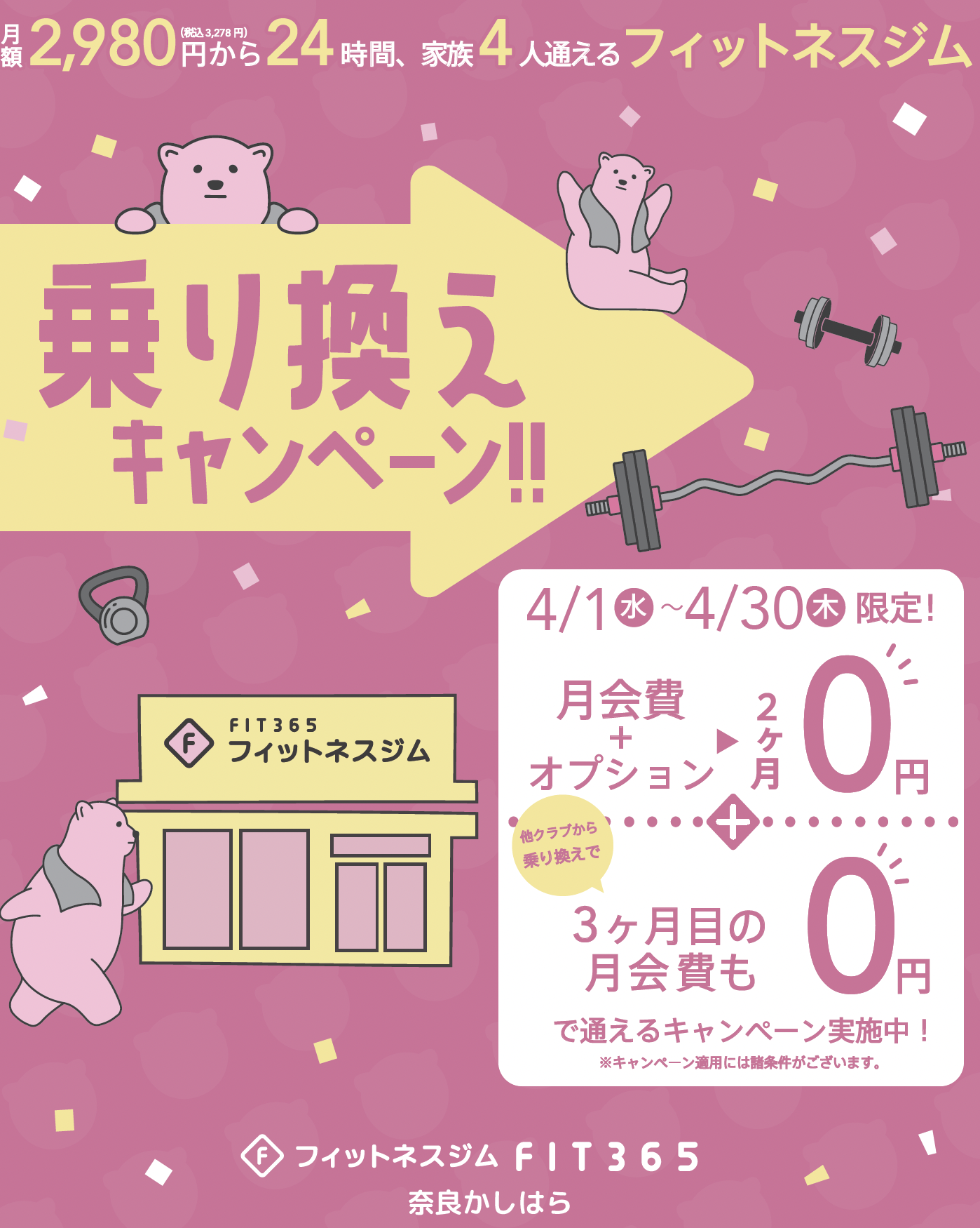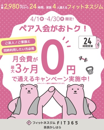 FIT365なら、月額2,980円(税込3,278円)で ご本人+ご家族3人の最大4名まで通えるんです✨