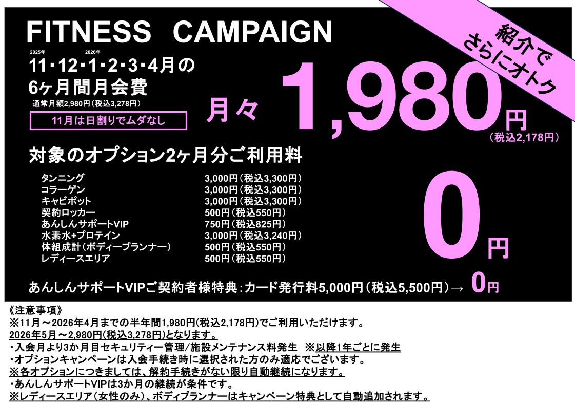 11月~2026年4月までの6カ月間、月額1,980円(税込み2,178円)で通えるキャンペーン!