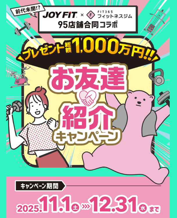 ※「FIT365アプリ」より友達紹介コード適応者限定でございます。