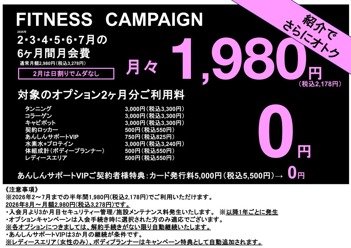 2026年2月~7月までの6カ月間、月額1,980円(税込み2,178円)で通えるキャンペーン!