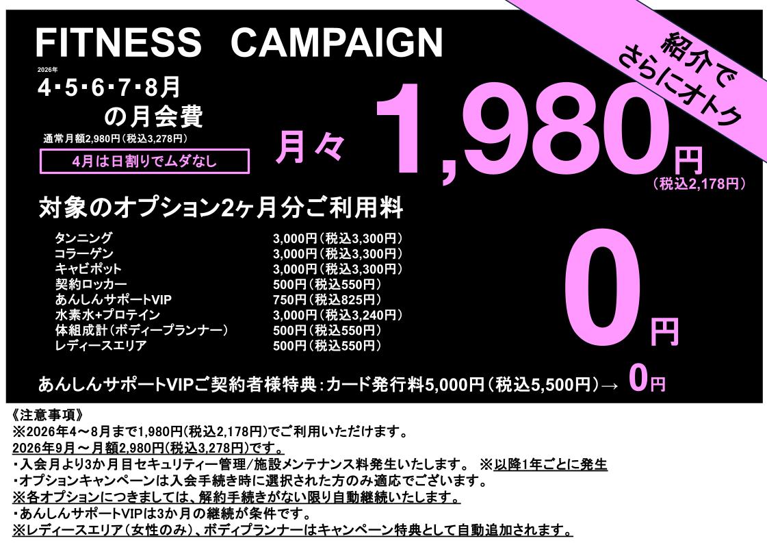 2026年4月~8月までの6カ月間、月額1,980円(税込み2,178円)で通えるキャンペーン!