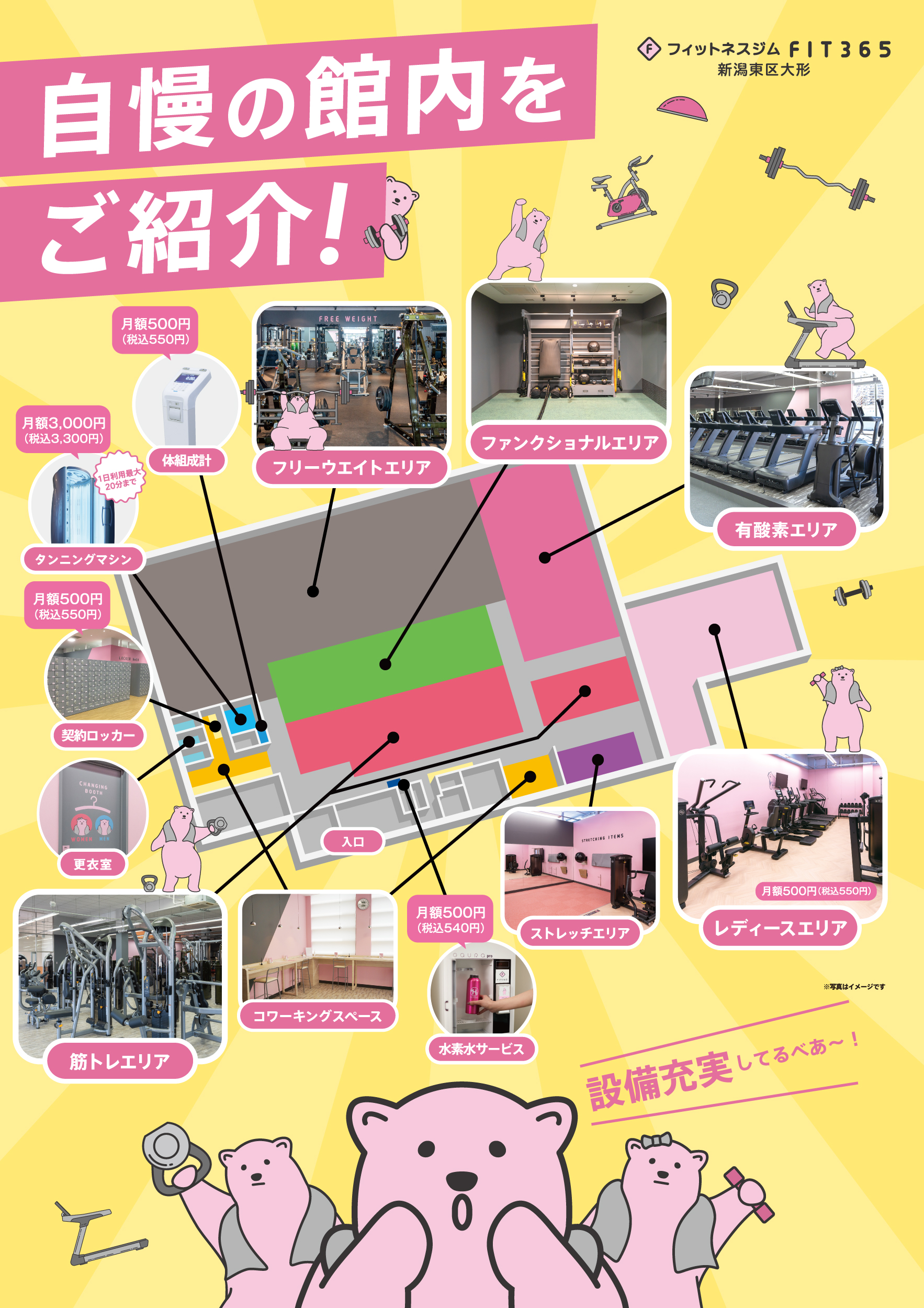 | レディースエリア | 休憩エリア | 契約ロッカー |