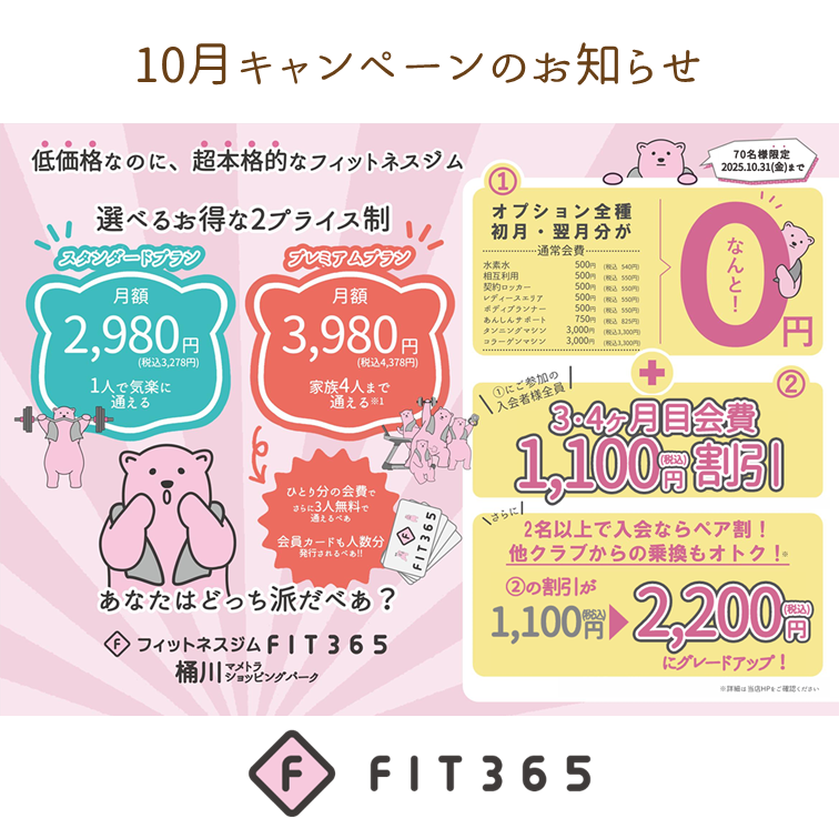 ※ご購入・ご入会ともにFIT365桶川マメトラショッピングパークでのご利用のみが対象となります。