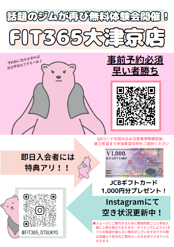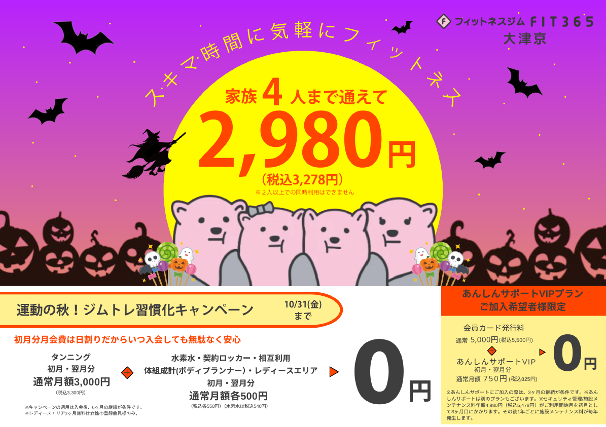 FIT365大津京店では、10月限定の入会キャンペーンを実施中です‼