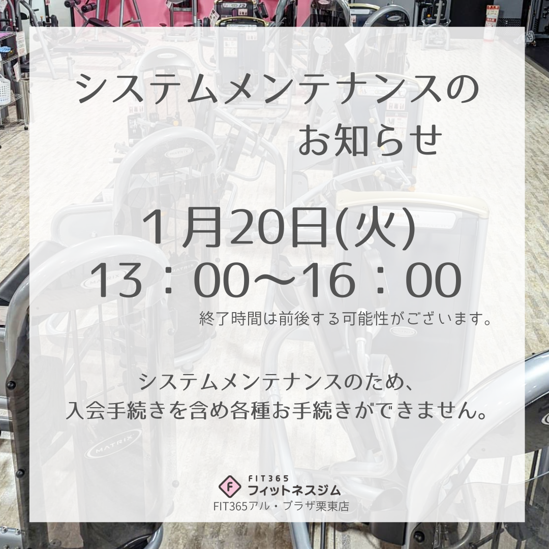 日頃よりFIT365アル・プラザ栗東店をご利用いただき誠に有難うございます。