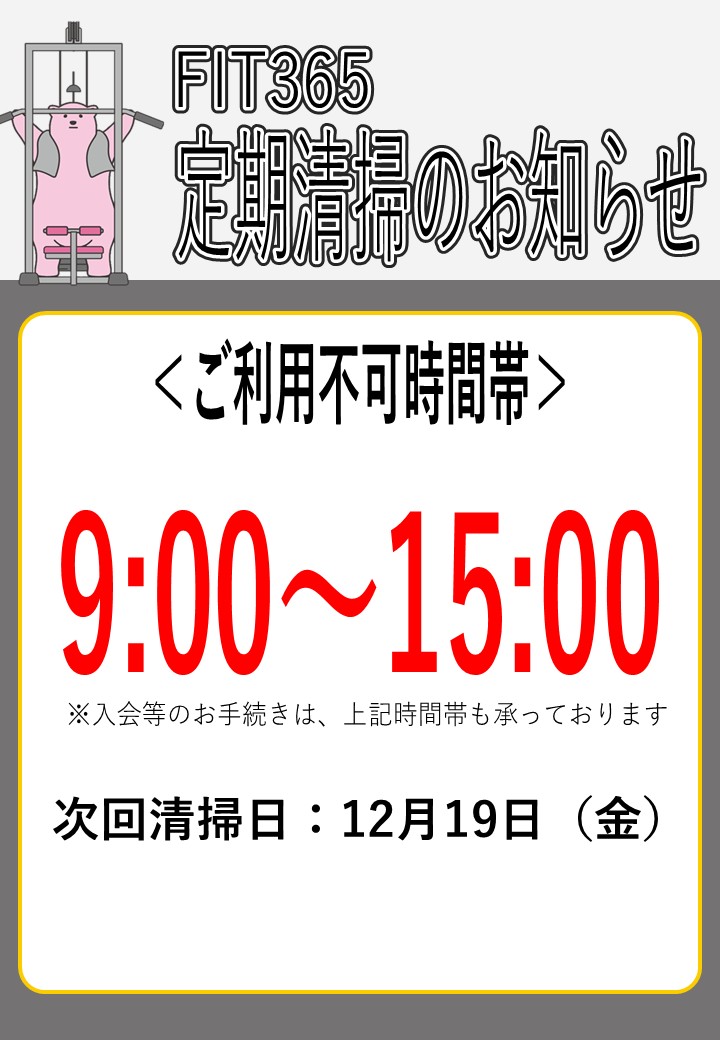 2025.12.1612月の定期清掃日は【12/19(金)】