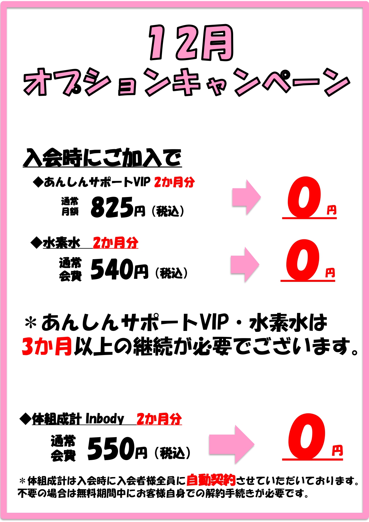 ※体組成計Inbodyは入会者様全員に2ヶ月無料で自動契約させていただきます。