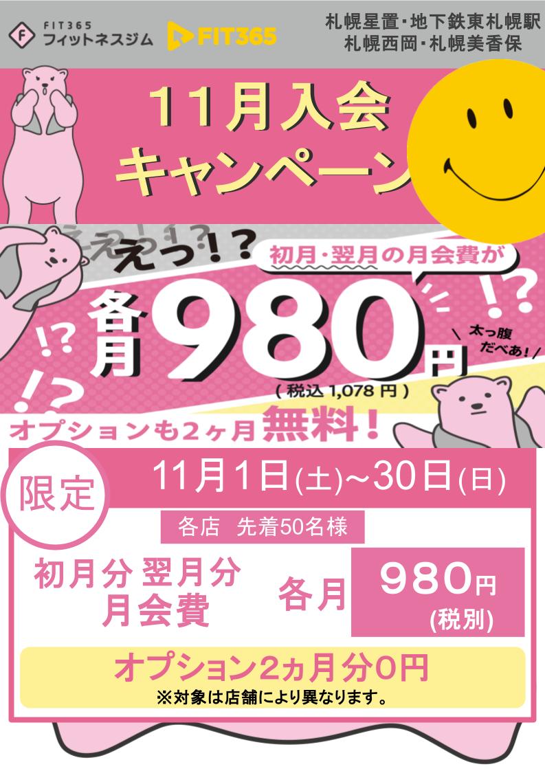 初月・翌月月会費が各月980円!!(税込1,078円)