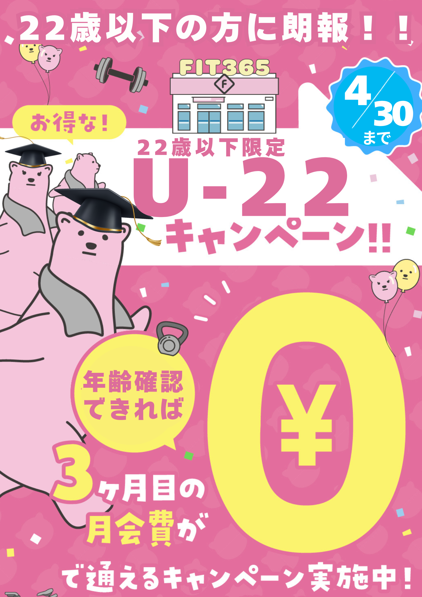 4月30日まで!U-22キャンペーン!!!