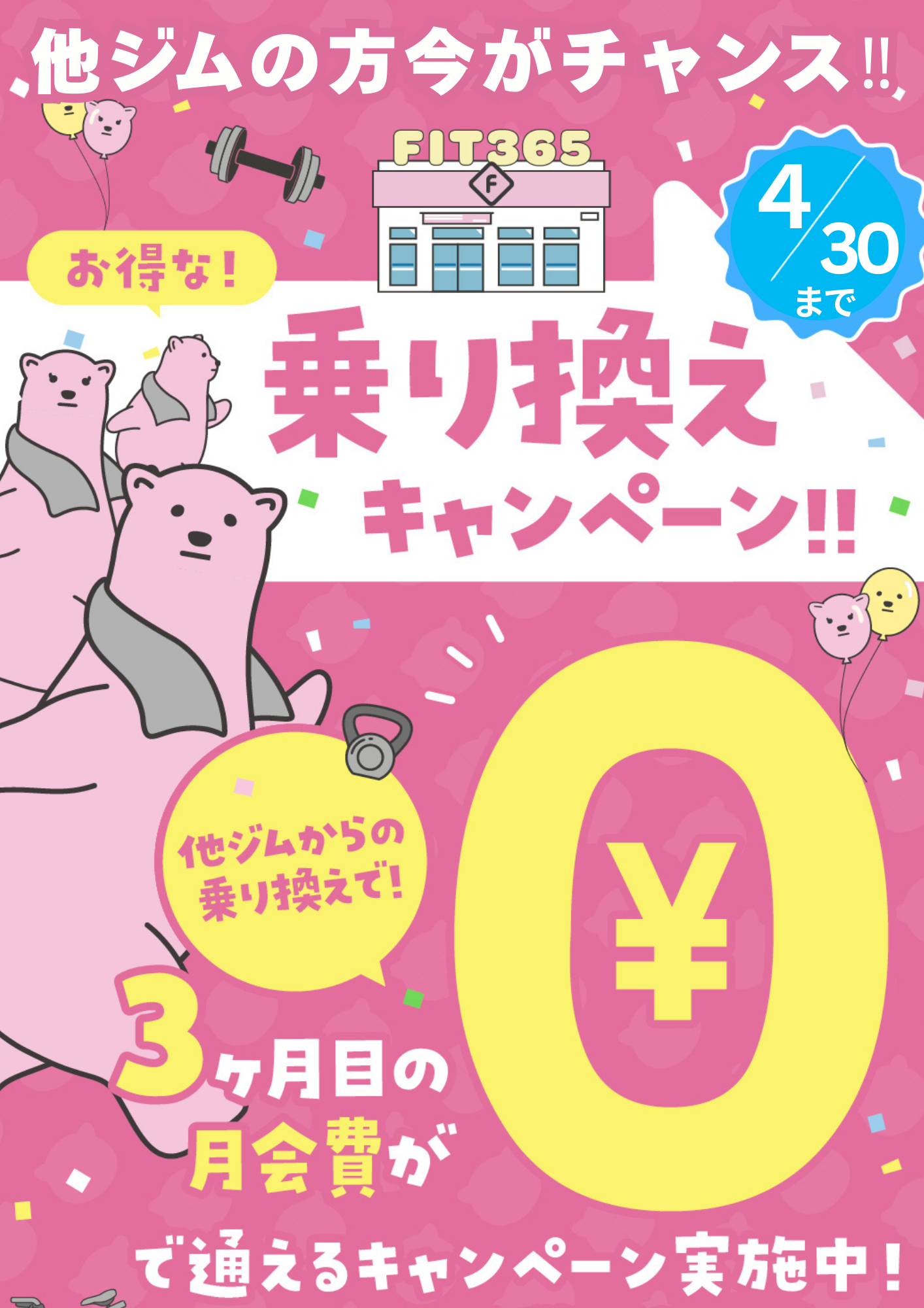 ※現在、他ジムに在籍していることが証明できる会員証等をご提示ください。